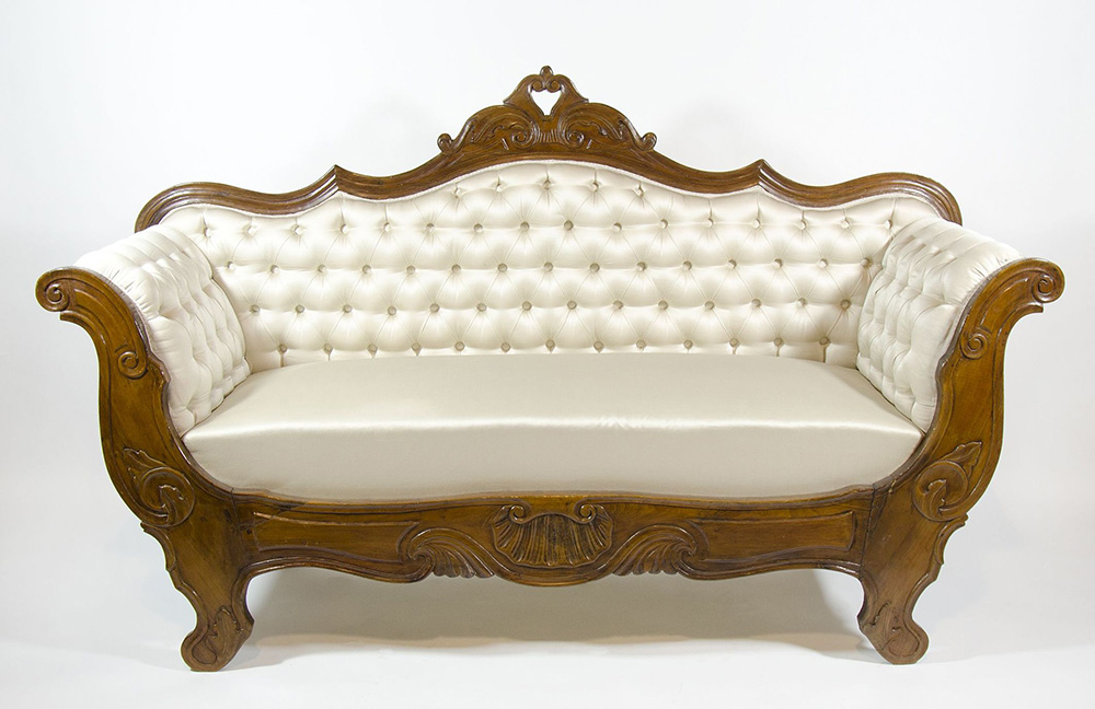 Lot 61 | Divano a 2 posti da barca in legno con schienale mosso e scolpito. Lung. cm....