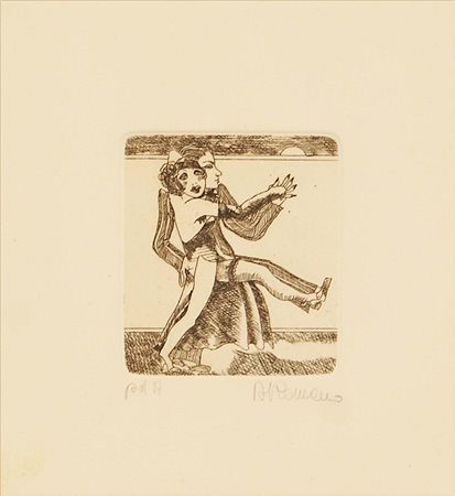 Daniela Romano (Napoli 1947 - Roma 2009), "Tango", incisione p.d.a., cm. 9x8, firmata in basso a destra.