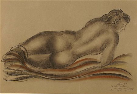 Roberto Almagno (Aquino 1954), "Nudo femminile", tecnica mista su carta, cm. 35x50, firmata e datata 1990 con dedica in basso a destra.