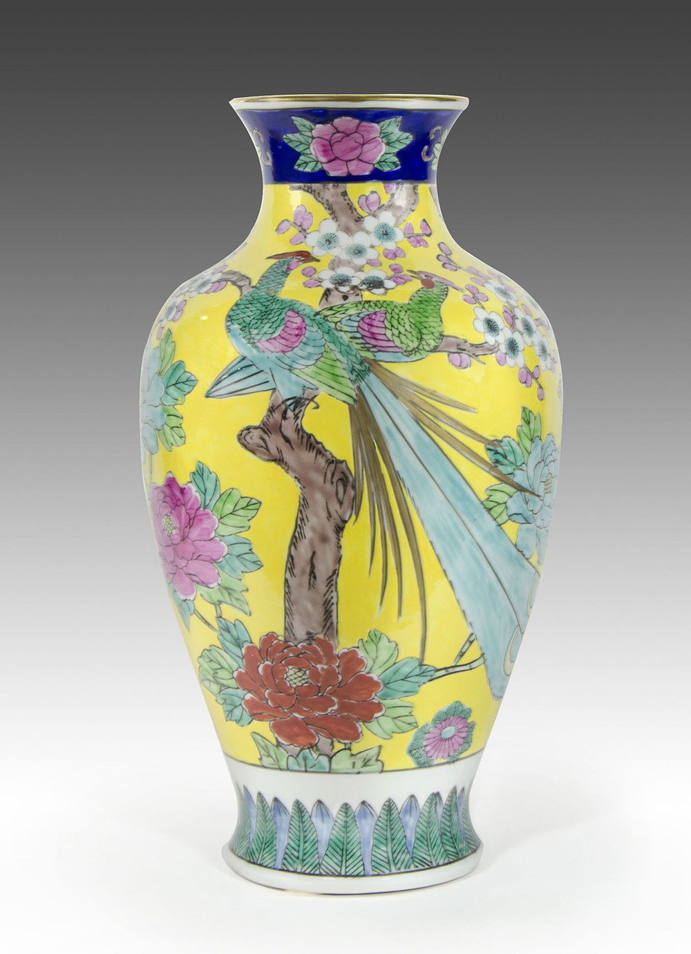 Grande vaso giapponese in porcellana policroma. H. cm. 45.