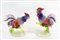Due sculture in vetro policromo raffiguranti galli. Lung. cm. 25. (difetti).