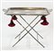 Grande vassoio rettangolare in metallo con manici, con struttura a formare un tavolino. cm. 60x52x84.
