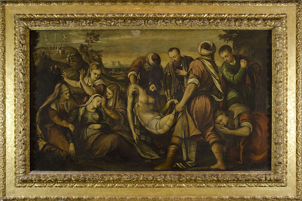 Maestro veneto del XVI secolo "Deposizione" cm. 110x185 - olio su tela foderata (dietto) Questa bella tela é sicuramente un'opera di ambito veronese della prima metà del XVI secolo e si ricollega all' attività di Bonifacio Dè Pitati detto Bonifacio Veronese.