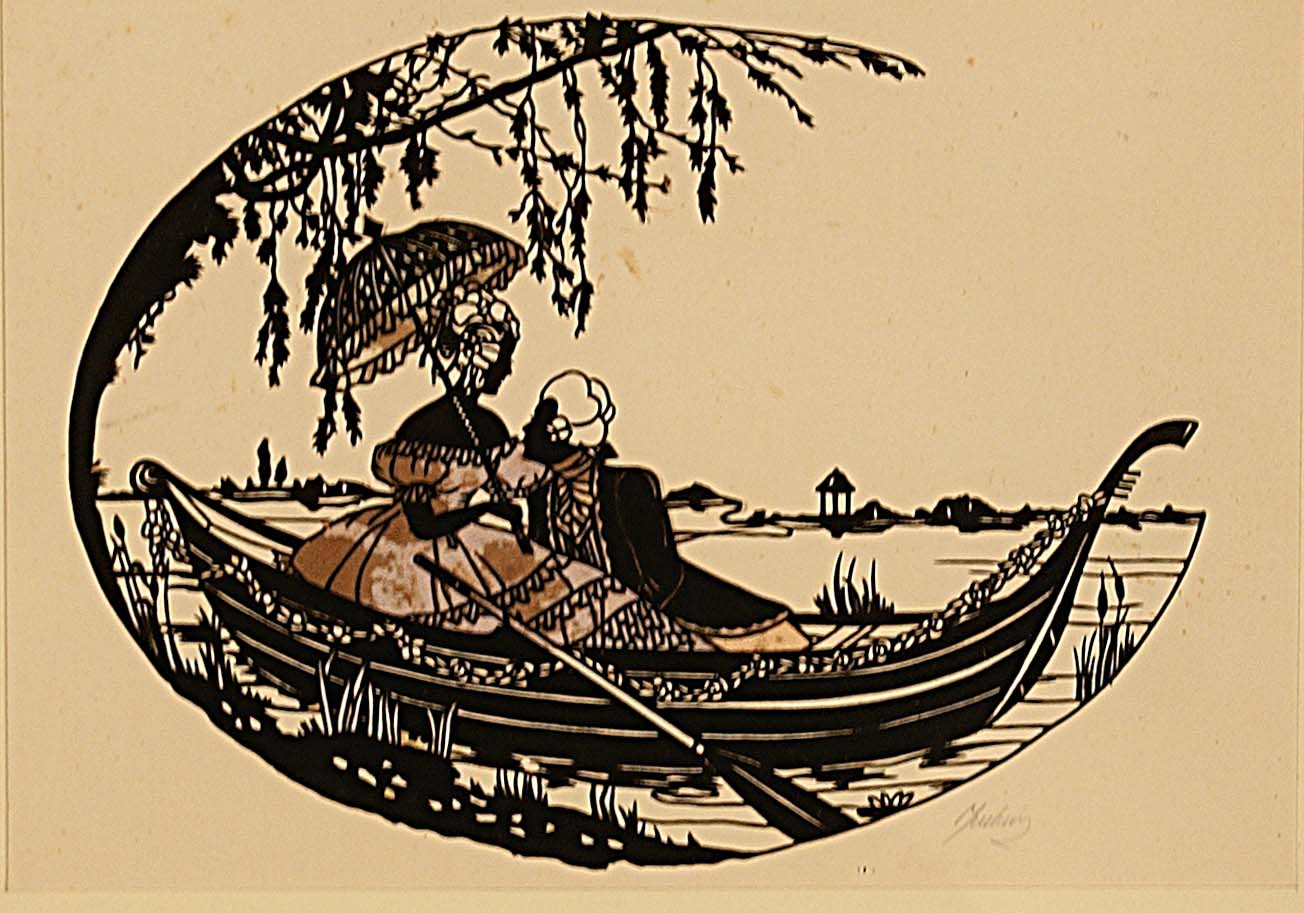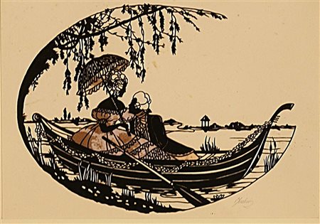 Scuola francese, inizio del XX secolo, "Scena galante", silhouette e tecnica...