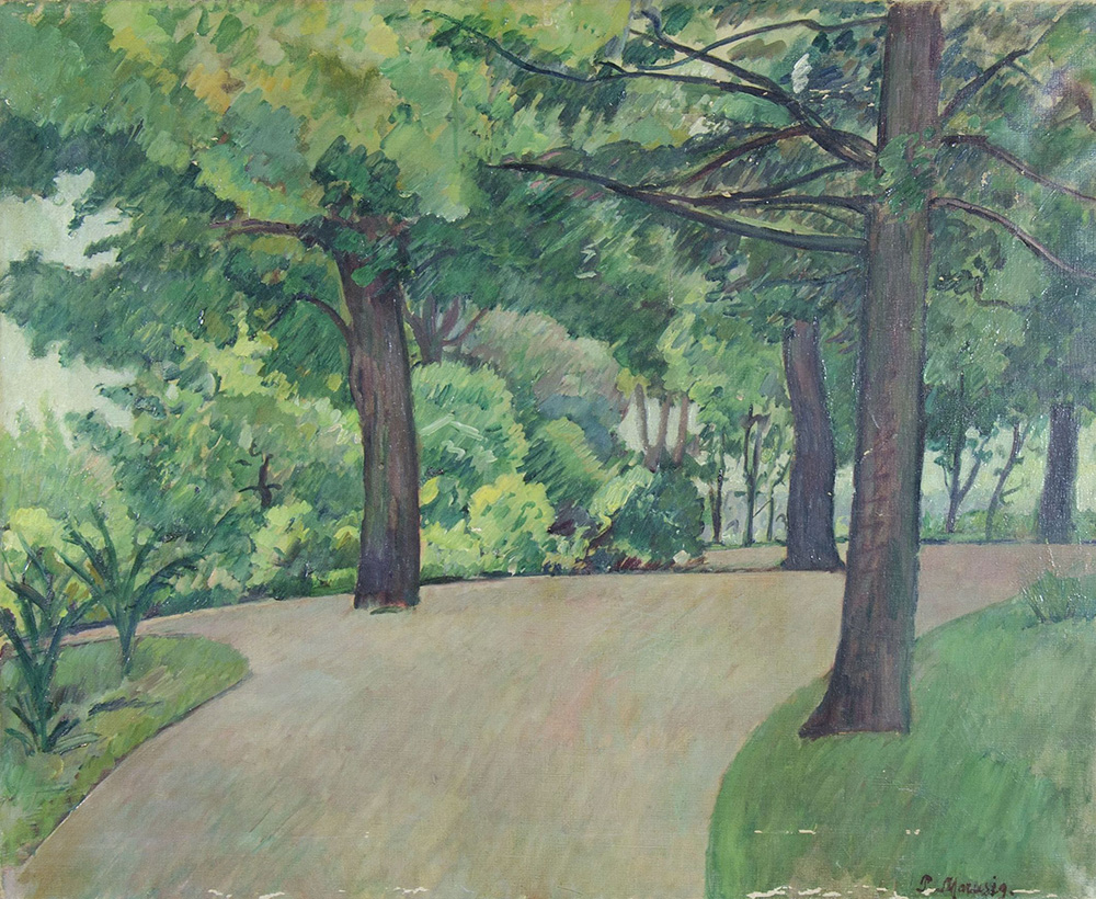Pietro Marussig Trieste 1879-Pavia 1937 "Il parco" (1914) cm. 70x85 - olio su tela (cadute di colore) Firmato b. a d. Al retro: etichetta Galleria Gianferrari Milano; etichetta Galleria del Secolo Roma; etichetta Galleria Genova; etichetta Galleria Sianesi Milano con timbro. Pubbl.: catalogo "Piero Marussig catalogo generale" a cura di N. Colombo, C. Gian Ferrari e E. Pontiggia, Silvana Editoriale 2006, pag. 119 fig. 136.