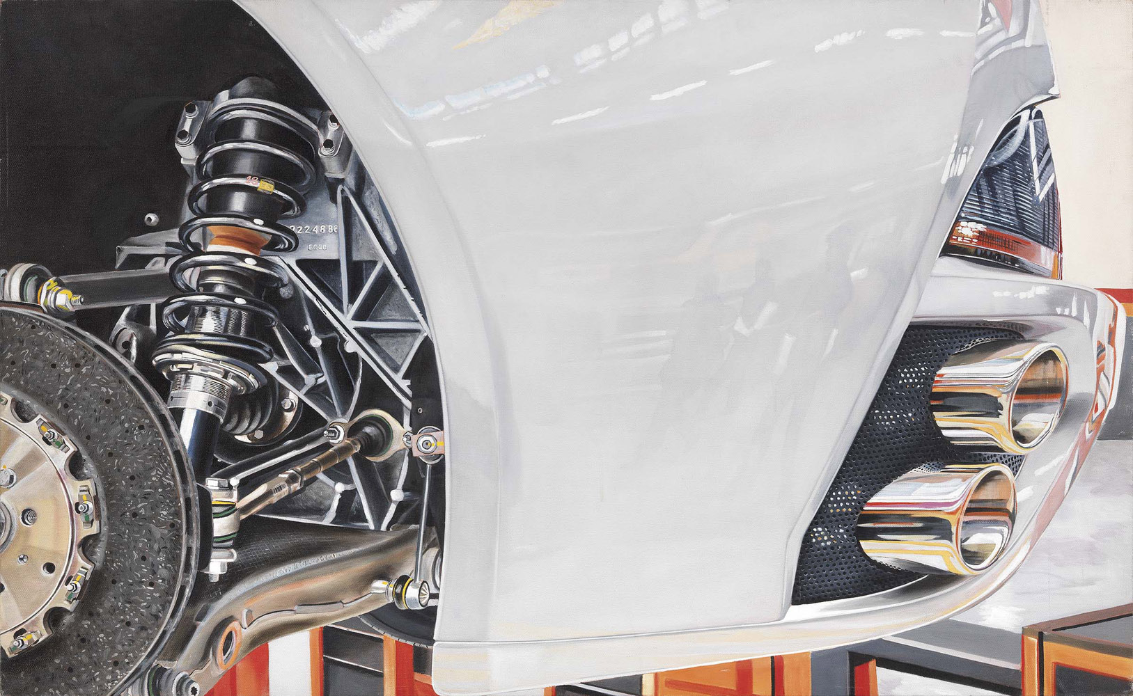 Enrico Ghinato, Lendinara (Ro) 1955, Multilink, 2008, Olio su tela, cm. 80x130, Numero d'archivio, titolo, firma e data al verso sulla tela: Arch. 231 / Multilink / Enrico Ghinato / 2008; firma e data sul telaio: Serie California / Enrico Ghinato 2008 / Marzo: due timbri Galleria Ferrari / 2008., Foto autenticata dall'artista