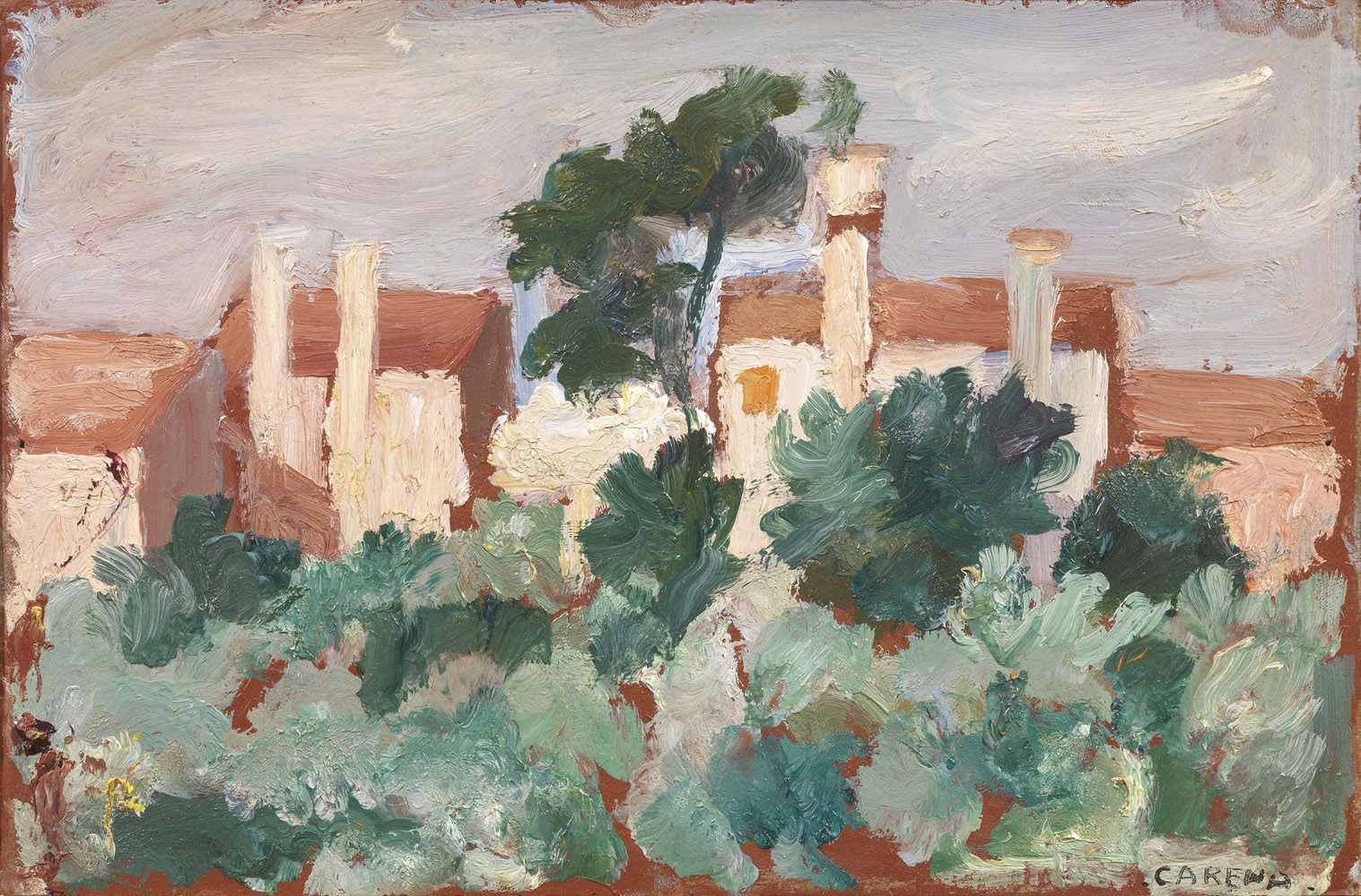 Felice Carena, Cumiana (To) 1879 - Venezia 1966, Paesaggio, Olio su cartone, cm. 16x24,3, Firma in basso a destra: Carena