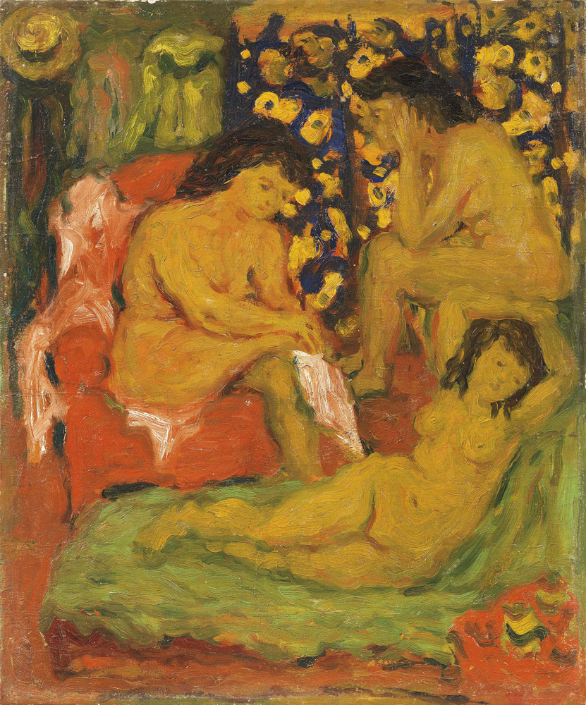 Arnaldo Badodi, Milano 1913 - Russia 1942, Gineceo, 1939, Olio su tela, cm. 60x50, Al verso sulla tela: etichetta e timbro Galleria Annunciata, Milano, con n. 26098., Storia: Galleria Annunciata, Milano; Collezione privata, Certificato su foto Galleria Annunciata, con n. 26098; certificato su foto Archivi di Corrente Art Consulting, 6 ottobre 2010, con n. ABZ104., Esposizioni: E subito riprende il viaggio... Opere dalle collezioni del MA*GA dopo l'incendio, Monza, Villa Reale, 5 settembre 2013 - 6 gennaio 2014