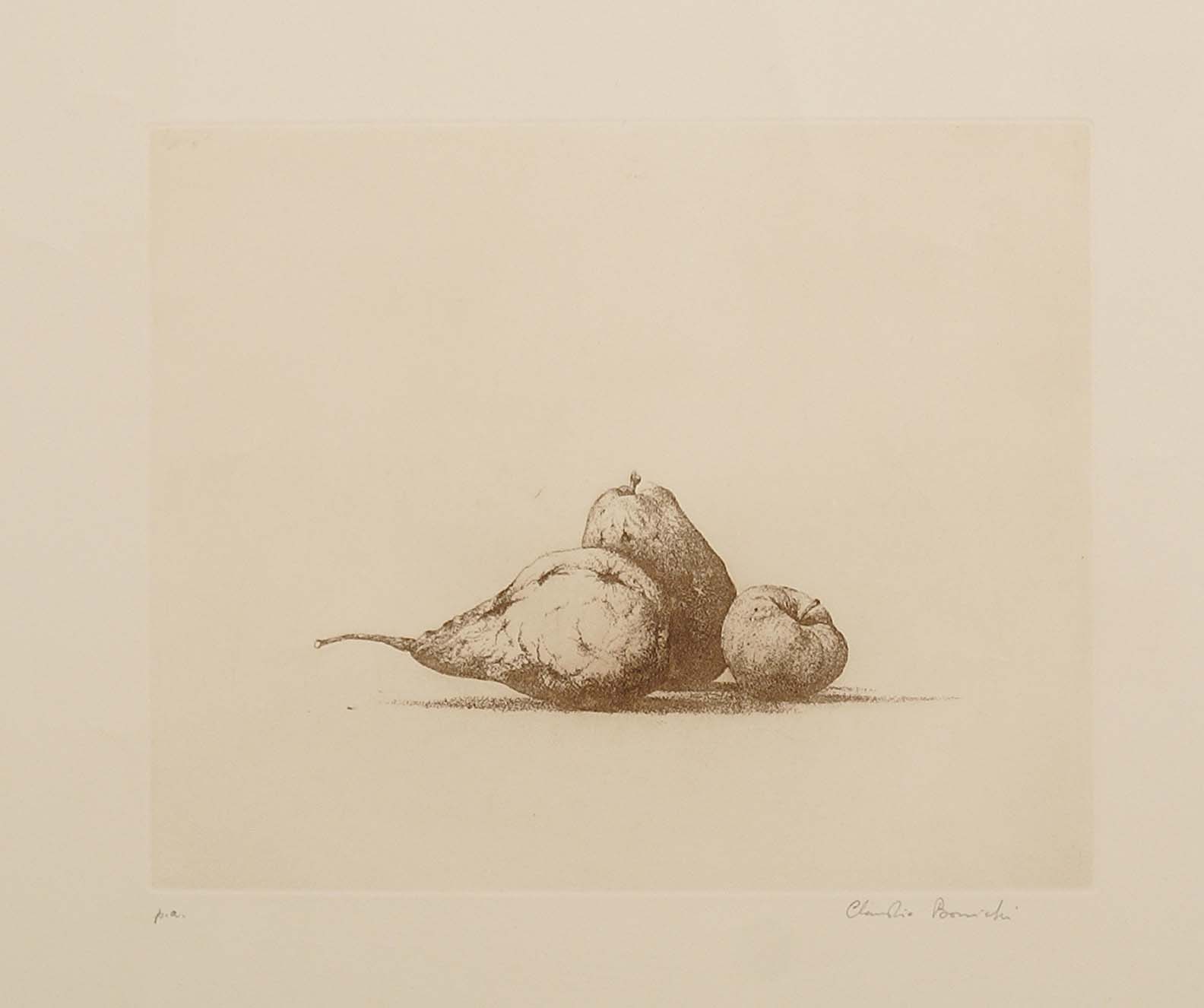 Claudio Bonichi (Novi Ligure 1943), "Pere e Mele", incisione p.a., cm. 50x68, firmata in basso a destra.