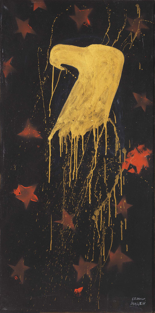 Franco Angeli, Roma 1935 - 1988, Aquila, seconda metà anni Settanta, Smalto su tela, cm. 120x60,5, Firma in basso a destra: Franco / Angeli; al verso sulla tela: etichetta Arte Moderna dei F.lli Orler, Favaro Veneto., Certificato su foto Studio Soligo, raccolta delle opere, con n. RMS79126005018