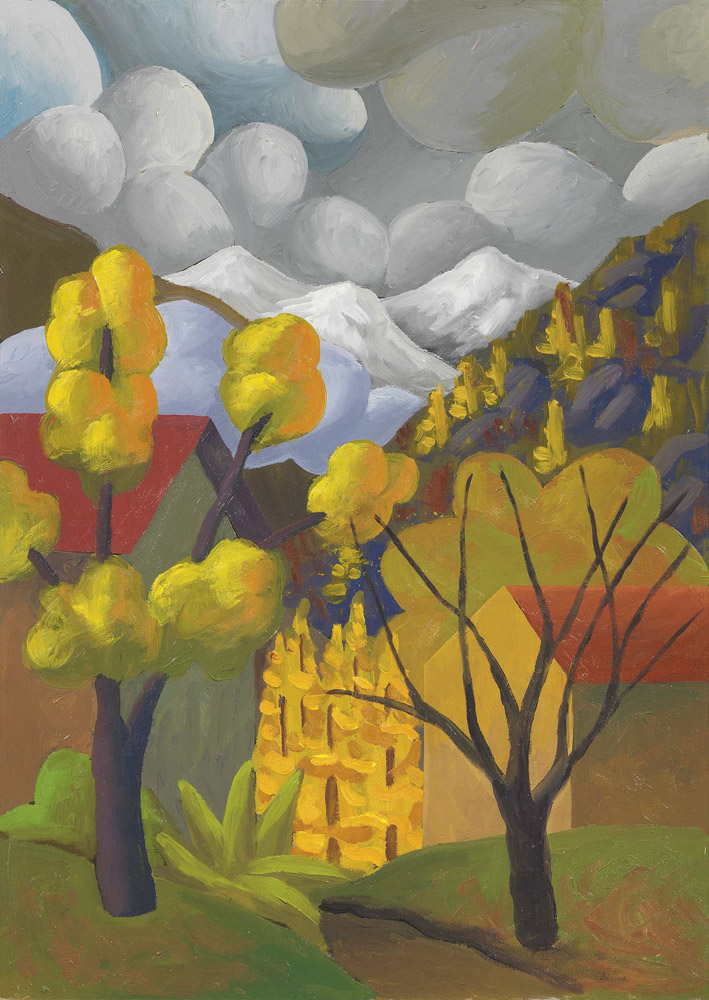 Salvo, Leonforte (En) 1947 - Torino 2015, Ottobre, Olio su cartone, cm....