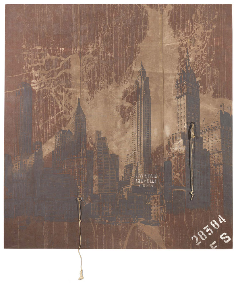 Luca Pignatelli, Milano 1962, New York, 2009, Tecnica mista su sacco postale, cm. 270x250, Firma, data e titolo al verso: Luca Pignatelli / Milano 2009 / New York., Certificato su foto Galleria d'Arte Contini, Venezia