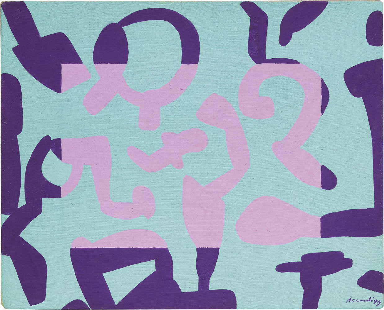 Carla Accardi, Trapani 1924 - Roma 2014, Turchino lilla viola, 1997, Vinilico su tela, cm. 40,5x50,5, Firma e data in basso a destra: Accardi 97; firma, titolo, numero d'archivio e data al verso, sul risvolto della tela: C. Accardi - Tuchino lilla viola - 562 A - 1997; sul telaio: etichetta Il Cerchio Galleria d'Arte Moderna, Milano: timbro Santo Ficara Arte Moderna e Contemporanea, Firenze., Foto autenticata dall'artista, Roma, 25/05/03, con n. 562 A e timbro Studio Accardi, Roma, con n. 71/03