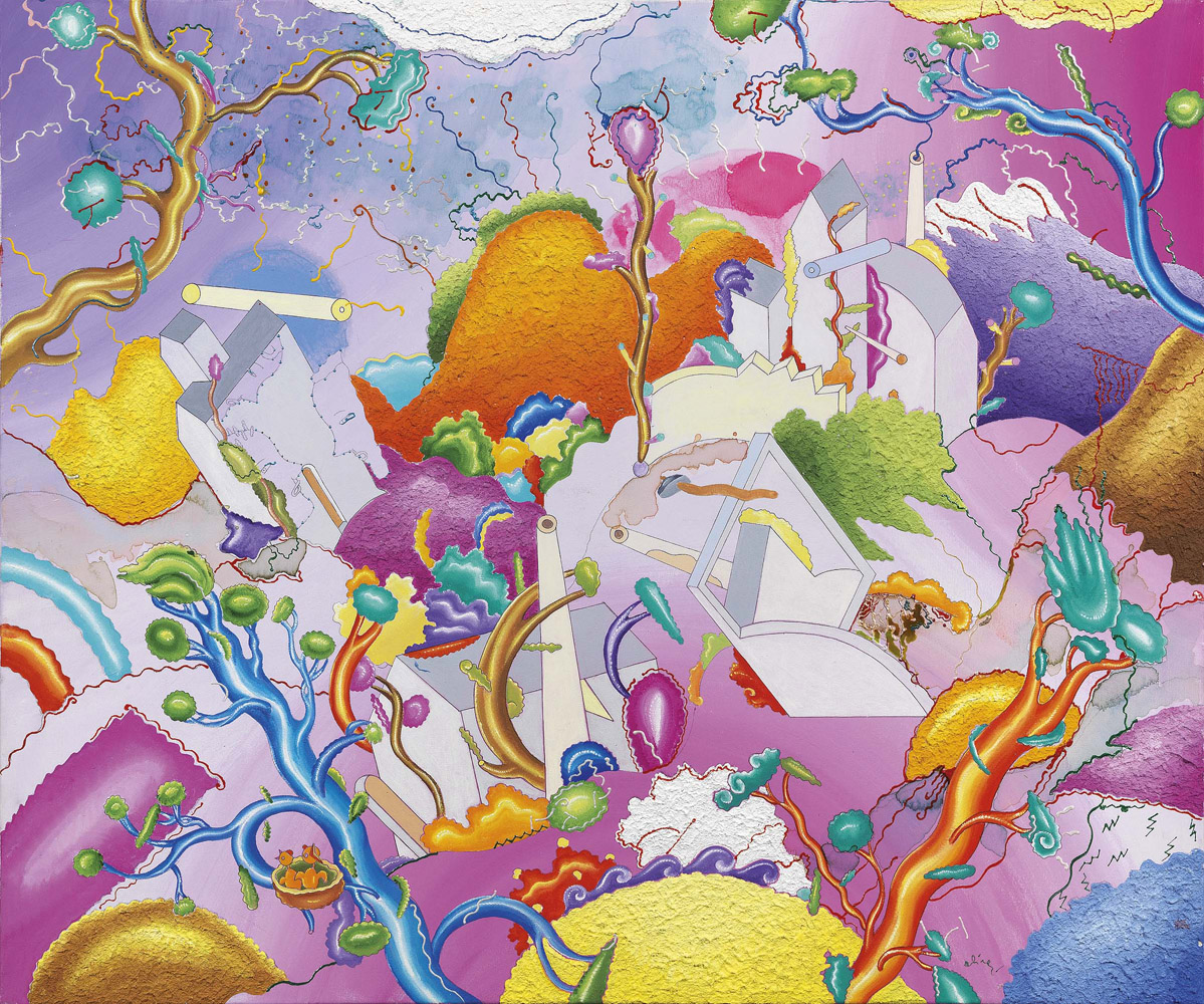 Luca Alinari, Firenze 1943, Ipnotizzami per favore, 1996, Tecnica mista su tela, cm. 100x120, Firma in basso a destra: Alinari; firma e titolo al verso sulla tela: Alinari / Ipno / Ipnotizzami per favore; data sul telaio: 96