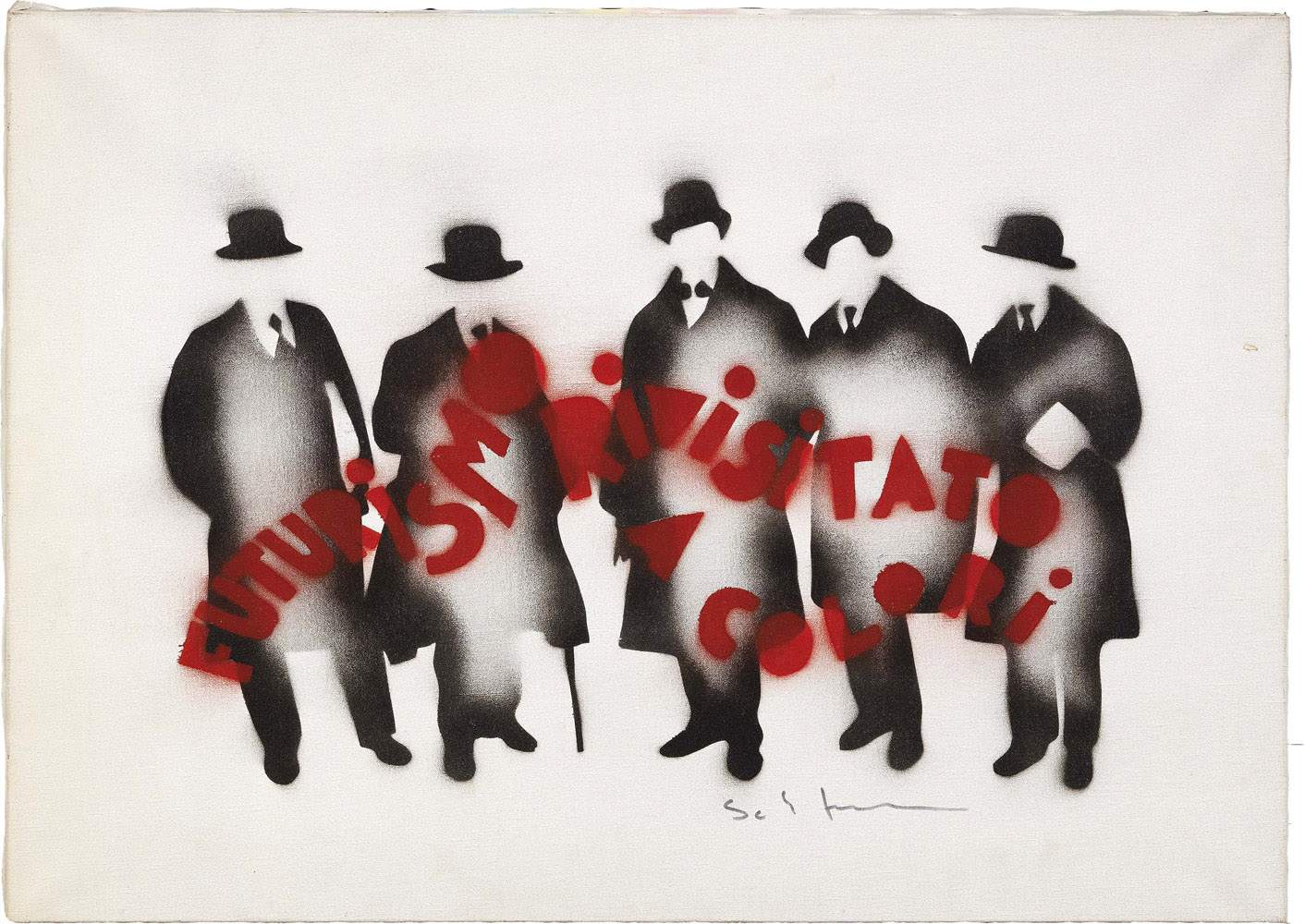 Mario Schifano, Homs 1934 - Roma 1998, Senza titolo, seconda metà anni Settanta, Smalto e spray su tela, cm. 68x96, Firma in basso al centro: Schifano; al verso sulla tela: etichetta Fondazione Mario Schifano / Archivio Generale dell'Opera Pittorica / di Mario Schifano, con n. SM70/814; sul telaio: timbro Stamperia dell'Arancio, Grottammare., Certificato su foto Fondazione Mario Schifano, Archivio Generale dell'Opera Pittorica di Mario Schifano, Roma, 16 ottobre 2003, con n. SM70/814., Bibliografia: Studio metodologico riguardante la catalogazione informatica dei dati relativi alle opere di Mario Schifano presenti presso la Fondazione M. S. Multistudio. Vol. A)I° Opere su tela 1956 - 1982, Università degli Sudi di Genova, 2007, p. 308, n. sm70/814