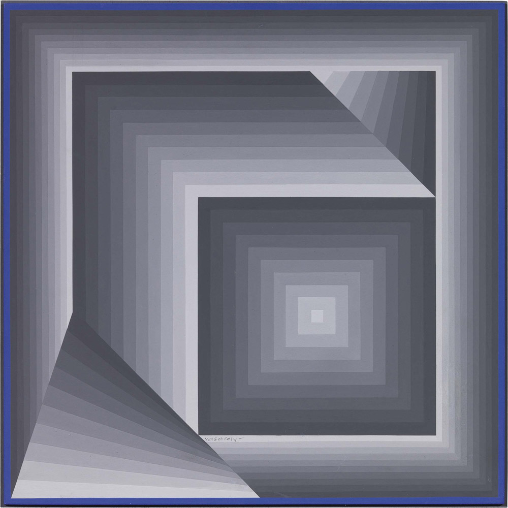 Victor Vasarely, Pecs 1906 - Parigi 1997, Reytéy, 1968, Olio su tavola, cm. 40x40, Firma in basso al centro: Vasarely. Al verso scritta: 2073 / "Reytéy" / 40x40 1968 / M. Vasarely., Certificato su foto di Michèle Vasarely in data 10 luglio 1991 con n. 2073