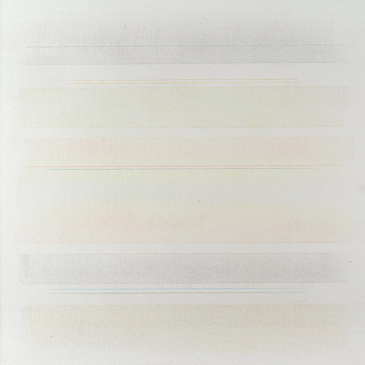 Firmato titolato e datato sul retro Riccardo Guarneri '5 strisce orizzontali sfumatura centrale' 1975