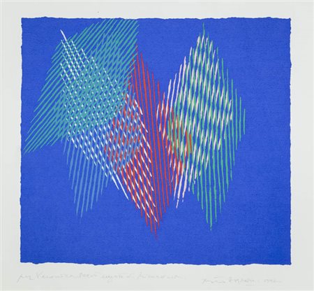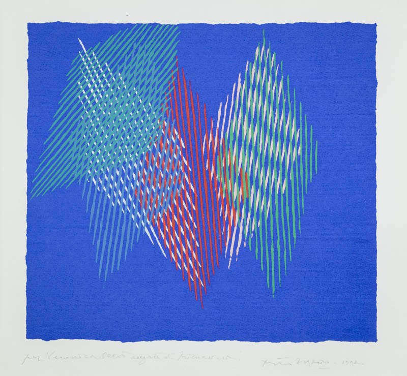 Piero Dorazio ( Roma 1927 2005 ) Senza titolo 1992 Tempera su cartoncino, cm. 35x47 Firma e data in basso a destra, dedica a persona in basso sinistra.