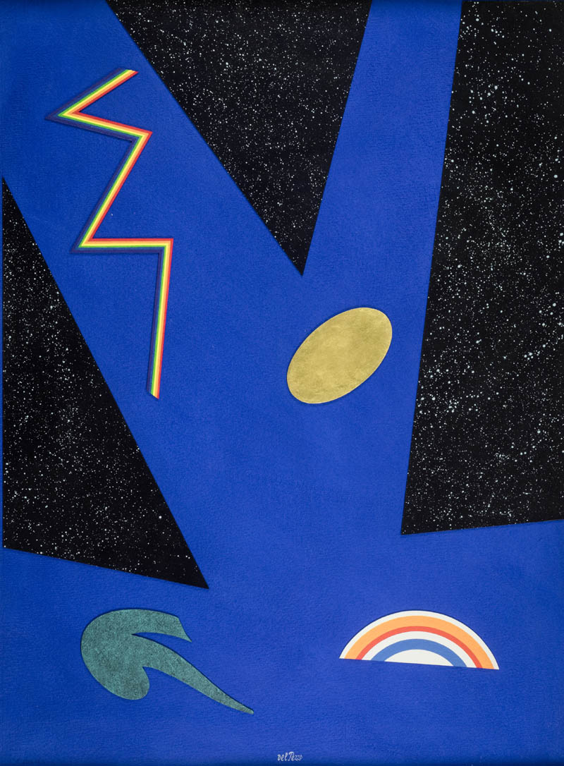 Lucio del Pezzo ( Napoli 1933 ) Spirali di vuoto 2006 Acrilico, collage acquerello e foglia oro su cartoncino, cm. 76x57,5 Firmato in basso al centro. Sul verso: firma, titolo e descrizione. Etichetta: "Studio Guastalla, Arte Moderna", Milano, con descrizione. Autentica dell'Artista su foto.
