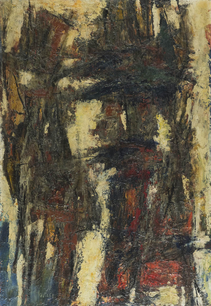 Mario Nuti ( Firenze 1923 Firenze 1996 ) Senza titolo 1961 Olio su tela, cm. 100x70 Firma e data in basso a sinistra. Autentica del figlio su foto con Etichetta Galleria Open Art, Prato, su foto.