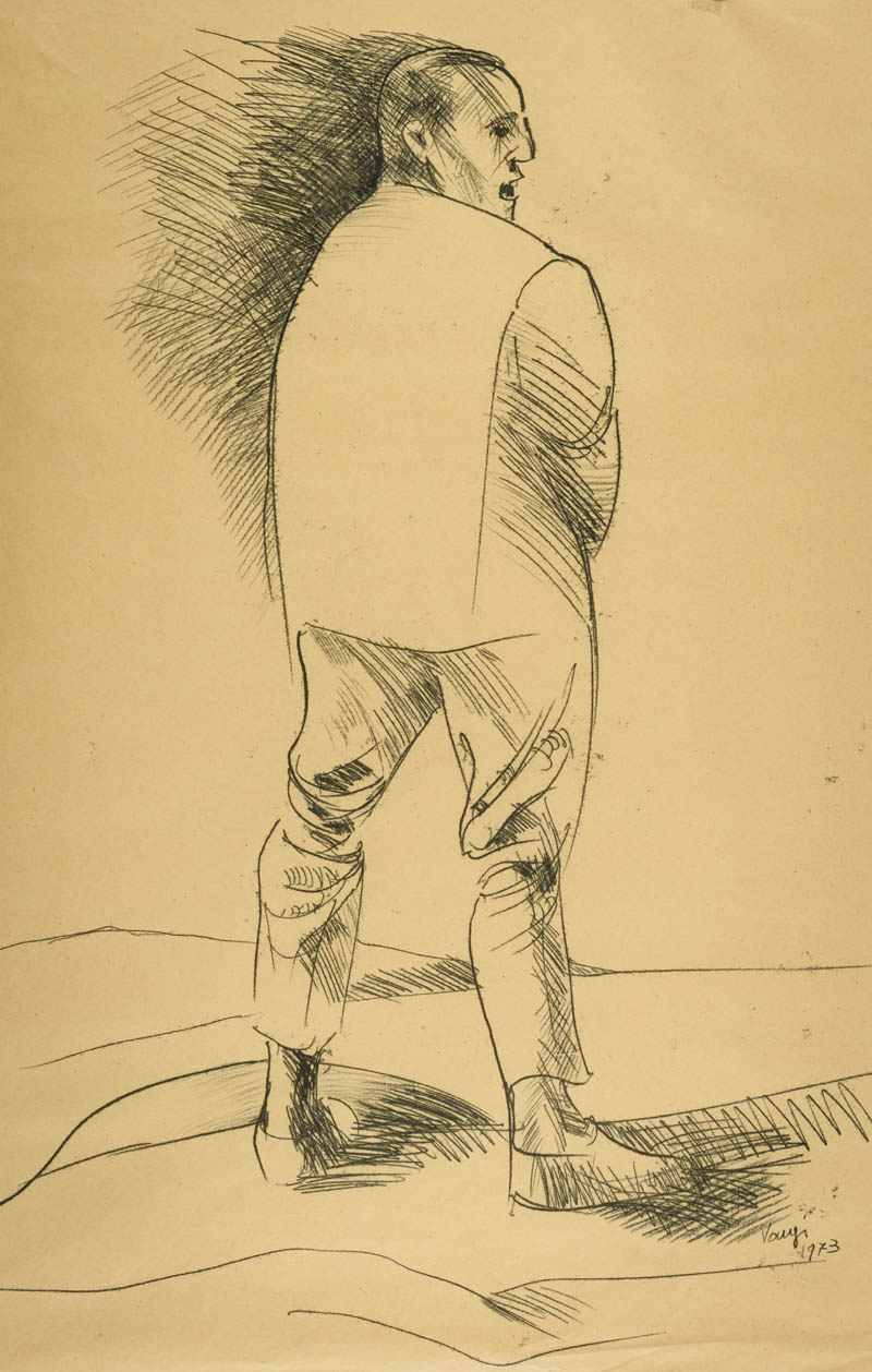 Giuliano Vangi ( Barberino di Mugello 1931 ) Figura 1973 China su carta...
