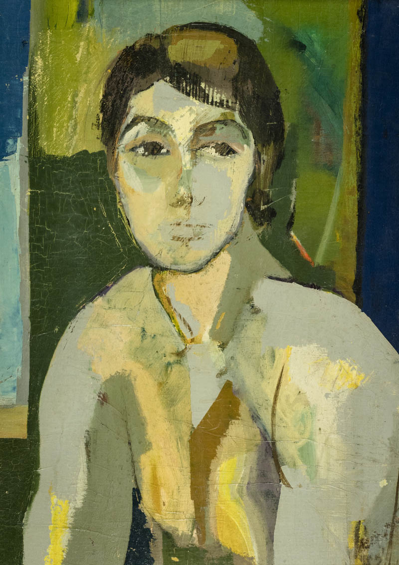 Piero Maggioni ( Monticello Brianza (Co) 1931 Viganò (Lc) 1995 ) Figura Olio su tavola, cm. 70x50 Firmato in basso a destra.