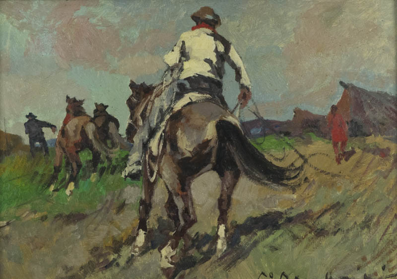 Carlo Domenici ( Livorno 1897 Portoferraio 1981 ) Buttero Olio su faesite, cm. 35x50 Firmato in basso a destra. Sul verso: firma e titolo. Scritto di Autenticità di Paolo Stefanini su foto.