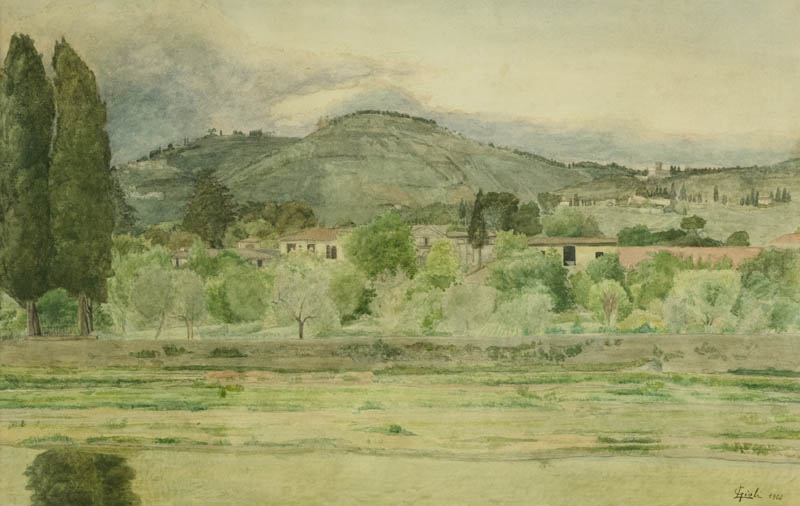 Luigi Gioli ( San Frediano a Settimo (Pi) 1854 Firenze 1947 ) Paesaggio 1902 Acquerello su carta intelata, cm. 45x70 Firma e data in basso a destra.