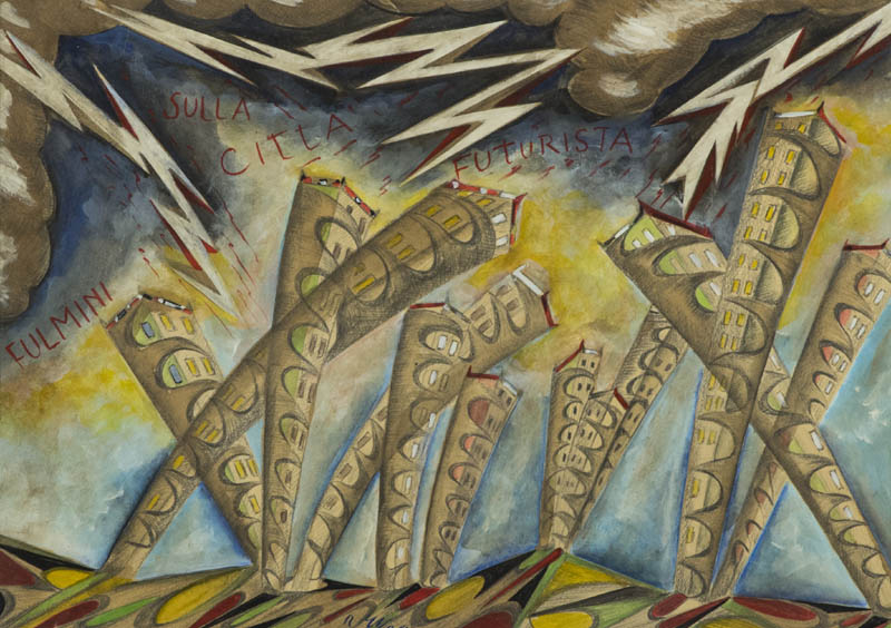 Riccardo Magni ( 1886 1964 ) Fulmini sulla città futurista 1935 Tecnica mista...