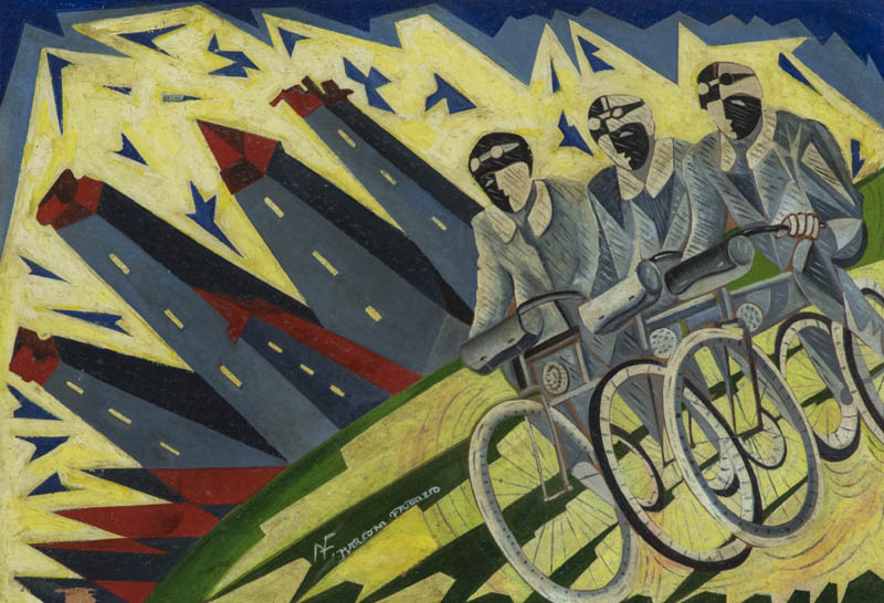 Fabrizio Marconi ( 1875 1956 ) Motociclisti futuristi corrono Olio su carta,...