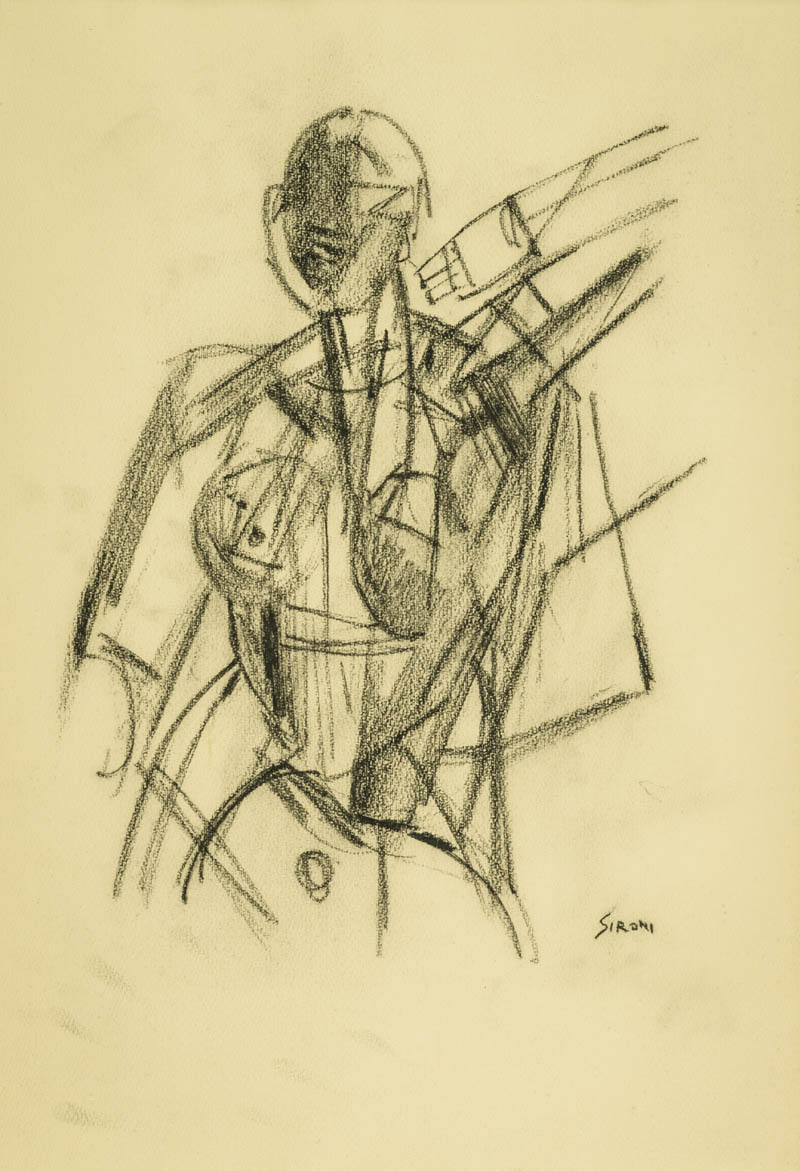 Mario Sironi ( Sassari 1885 Milano 1961 ) Figura femminile Carboncino su cartoncino, cm. 48x33 Firmato in basso a destra.