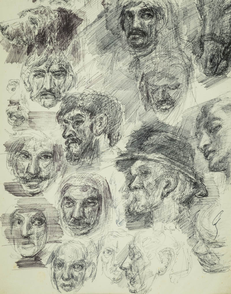 Domenico Gnoli ( Roma 1933 New York 1970 ) Studio di teste China su carta,...