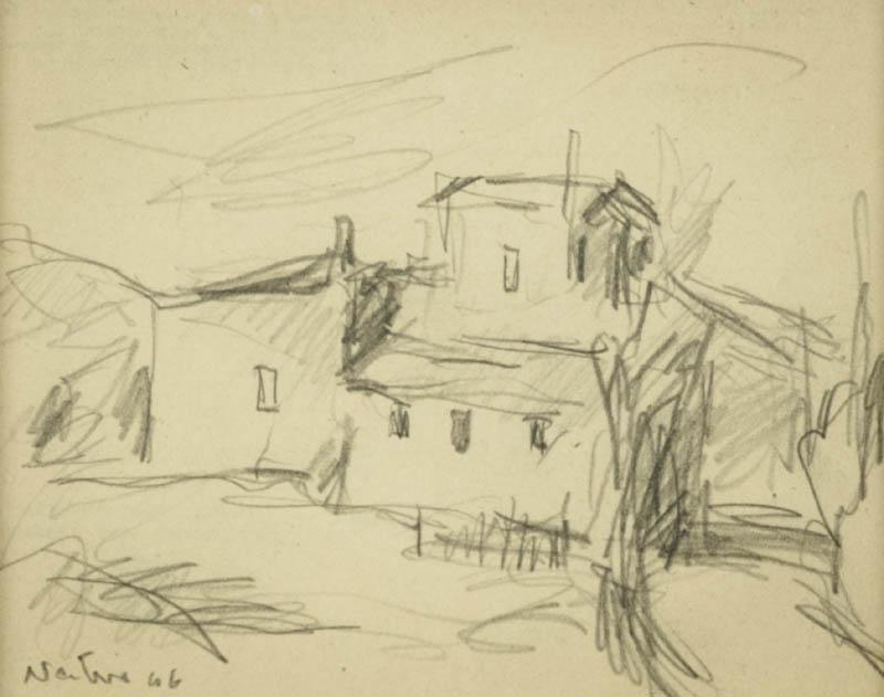 Gualtiero Nativi ( Pistoia 1921 Greve in Chianti (Fi) 1999 ) Case 1946 Matita su carta, cm. 10,5X13 Firma e data in basso a sinistra. Bibliografia:"Gualtiero Nativi", Catalogo Generale volume 1, Archivio Gualtiero Nativi, Galleria d'Arte Nozzoli, Empoli, pag. 79, fig. 42 Autentica dell'Archivio Gualtiero Nativi su foto con timbro a secco, firma "Berto Nativi" e Archivio n° D4645