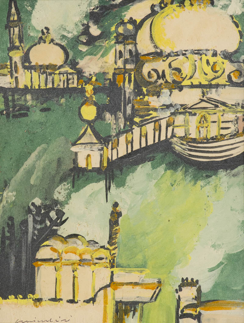Remo Brindisi ( Roma 1918 Lido di Spina (Fe) 1996 ) Venezia Terracotta dipinta, cm. 40x30 Firmato in basso a sinistra.