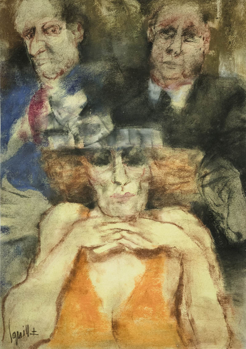 Remo Squillantini ( Stia 1920 1996 ) Figure Tecnica mista su cartoncino, cm. 48x33 Firmato in basso a sinistra.