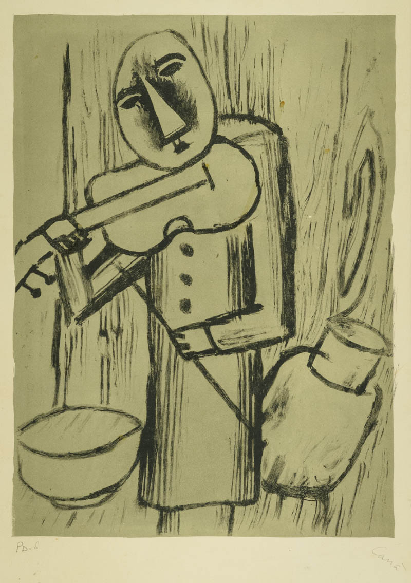 Carlo Carrà ( Quargnento (Al) 1881 Milano 1966 ) Suonatore di violino Litografia su carta, cm. 55x38, es. P.A. Firma in basso a destra, tiratura in basso a sinistra.