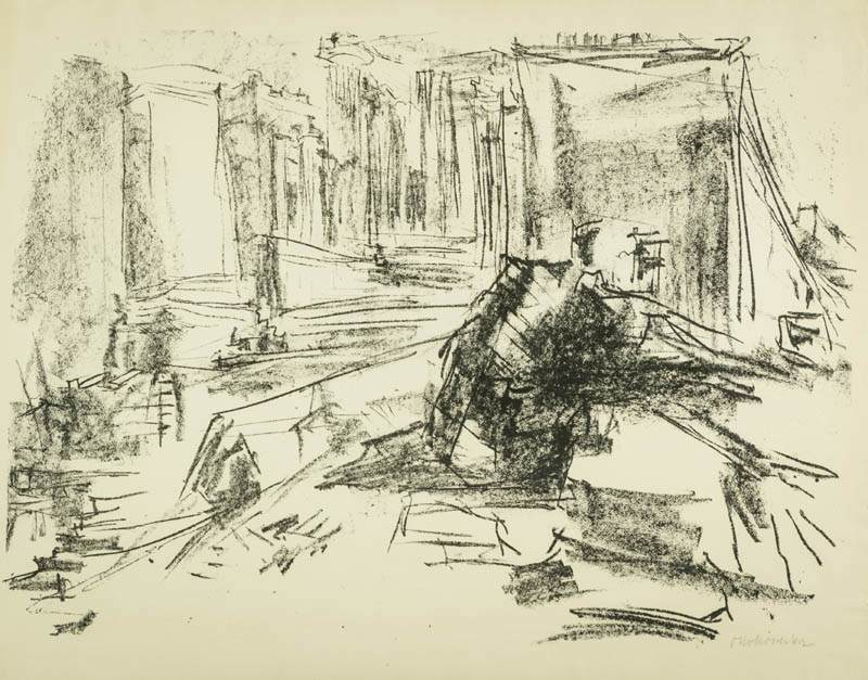 Oskar Kokoschka ( 1886 1980 ) Propylaen 1961 Litografia su carta, cm. 52,5x66, es. P.A. Certificato di Autenticità e provenienza "Ai tre Torchi", Torino.