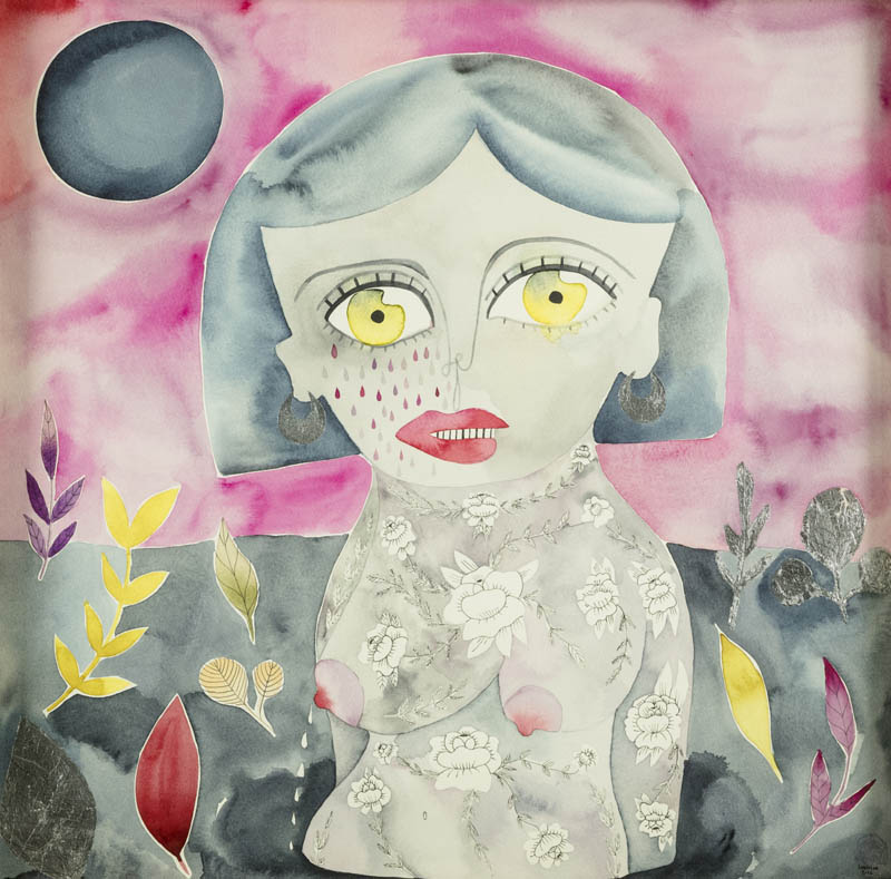 Beatrice Taccogna ( Pontedera 1992 ) Autoritratto 2016 Tecnica mista su cartoncino, cm. 50x50 Firma, data e timbro dell'Artista in basso a destra. Autentica dell'Artista su foto.