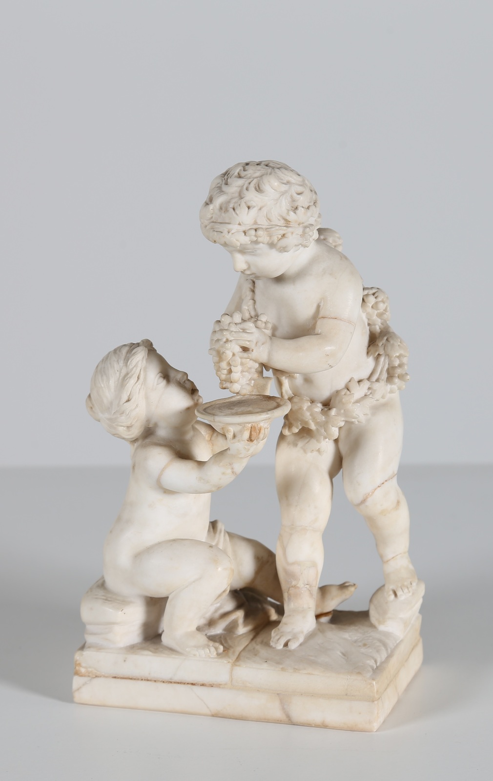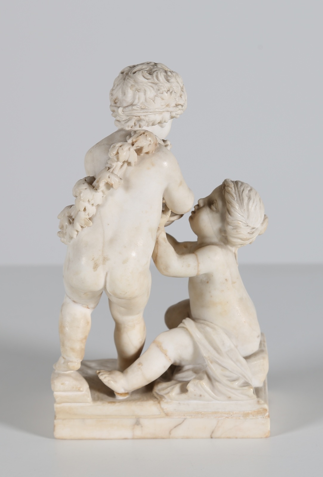 MANIFATTURA ITALIANA DEL XIX SECOLO Coppia di puttini in marmo. . Cm 9,50 x...