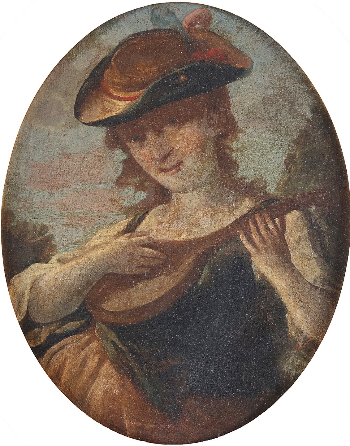 Lot 29 | ARTISTA LOMBARDO DEL XVIII SECOLO Donna con mandolino. . Olio su tela ovale....