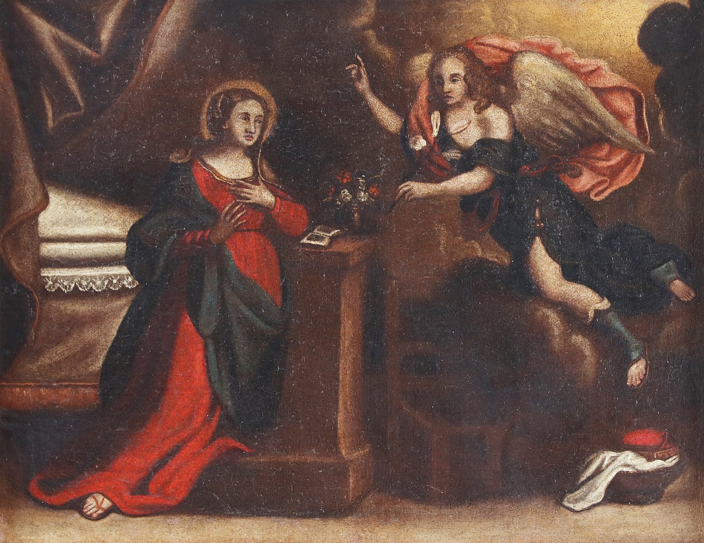 ARTISTA DEL XVII SECOLO. Annunciazione. . Olio su tela . Cm 60,00 x 47,00. ....
