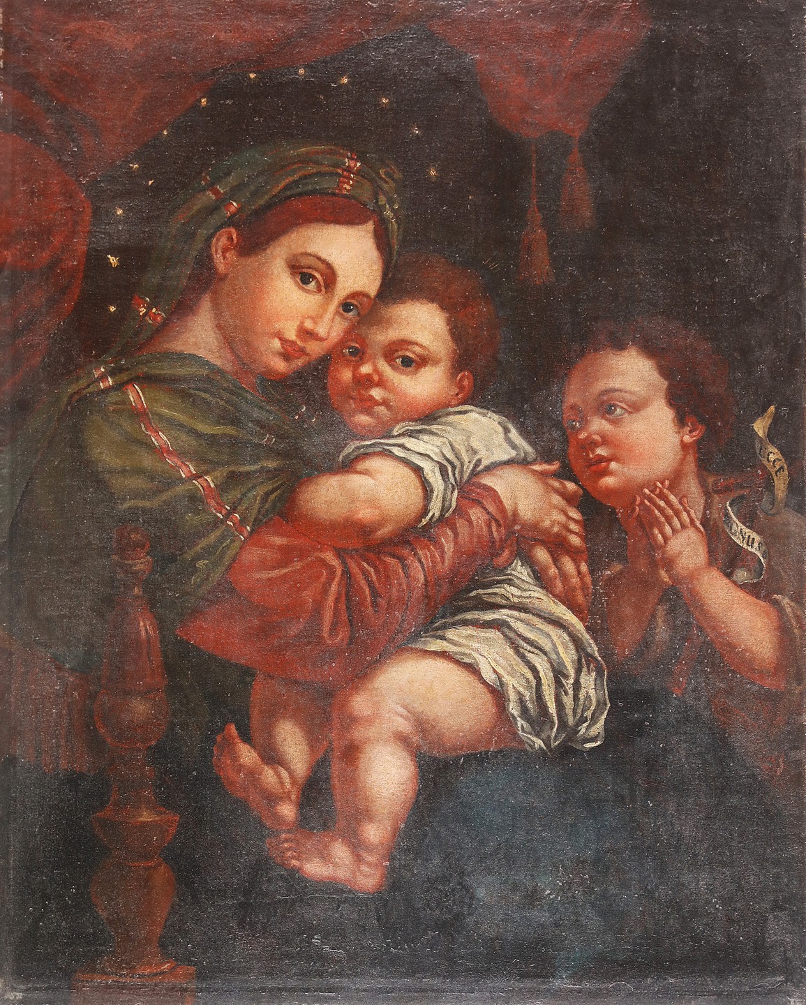 ARTISTA DEL XVII SECOLO. Madonna della seggiola ( da Raffaello). Olio su tela...