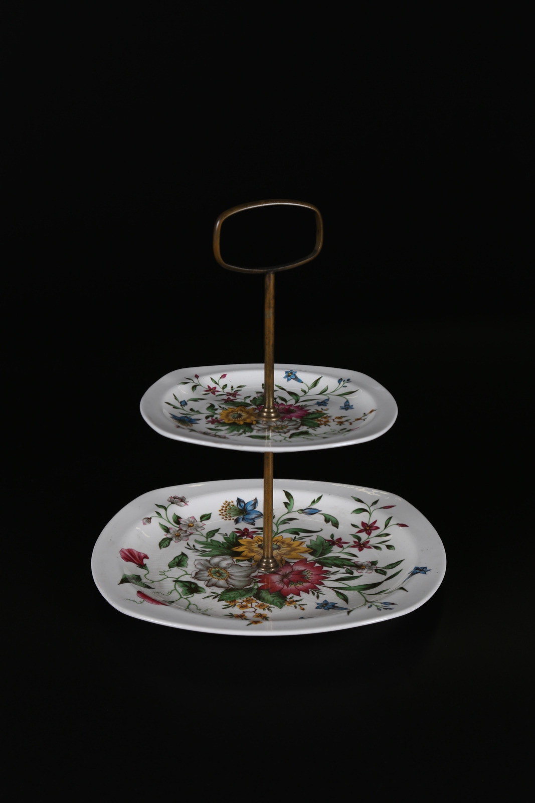 MANIFATTURA ITALIANA DEL XIX SECOLO Alzatina a due ripiani. Ceramica dipinta....