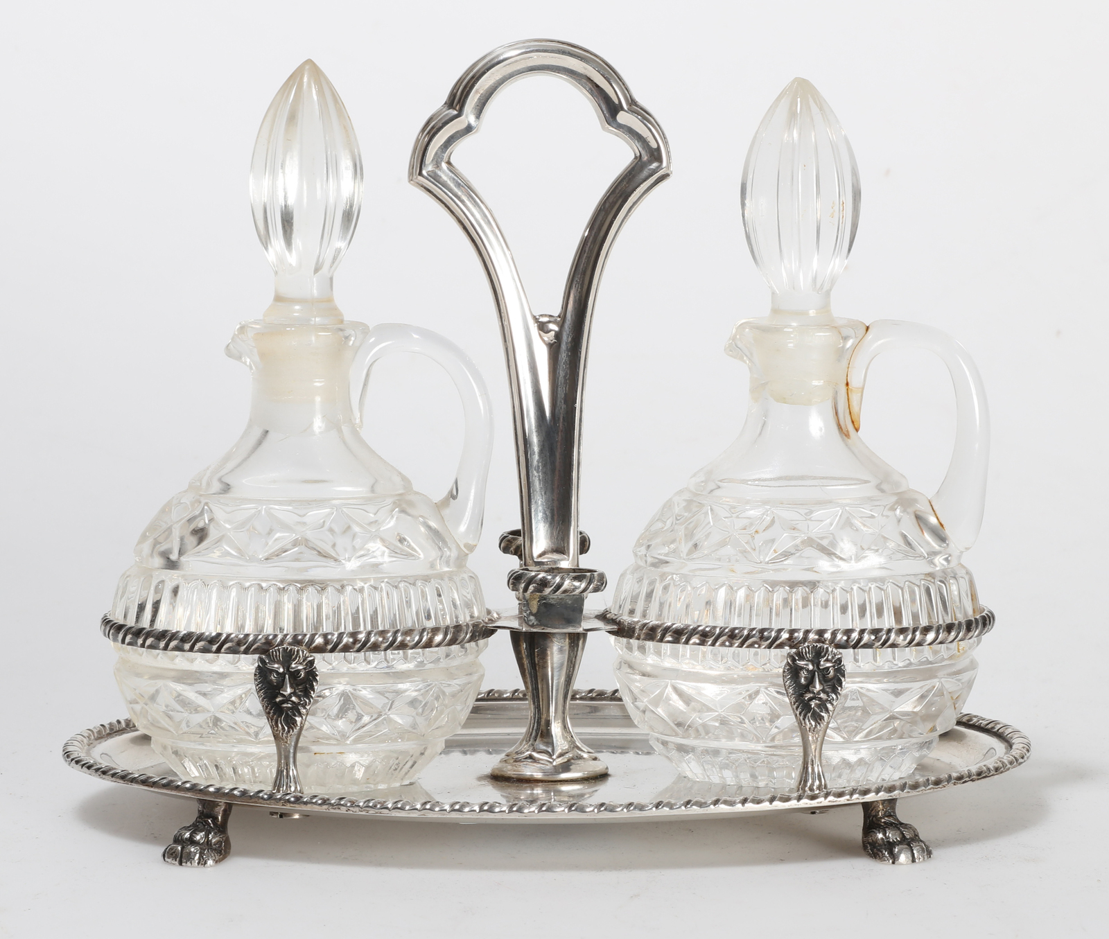 ARGENTIERE VENEZIANO DEL XIX SECOLO Oliera con contenitori in cristallo. . Cm...