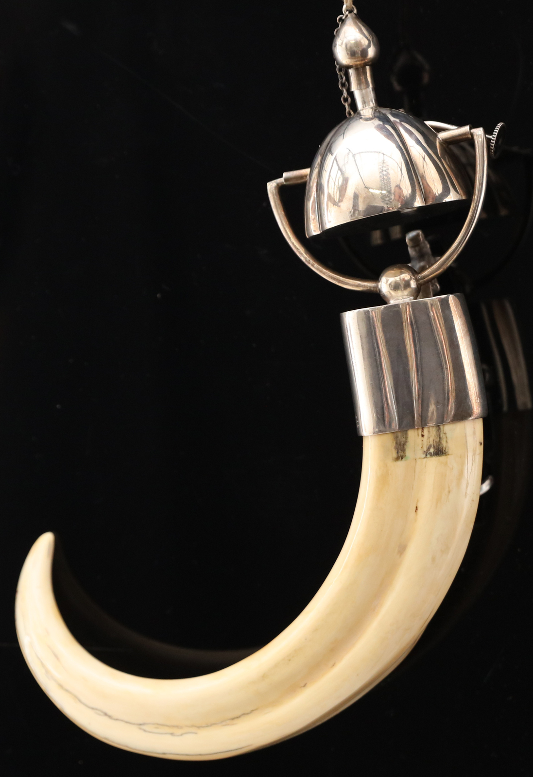 ARGENTIERE DEL XX SECOLO Fiaschetta in argento montata su zanna di cinghiale....