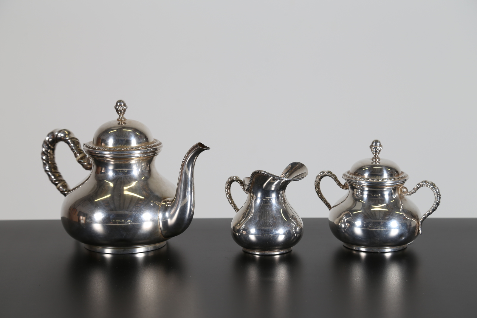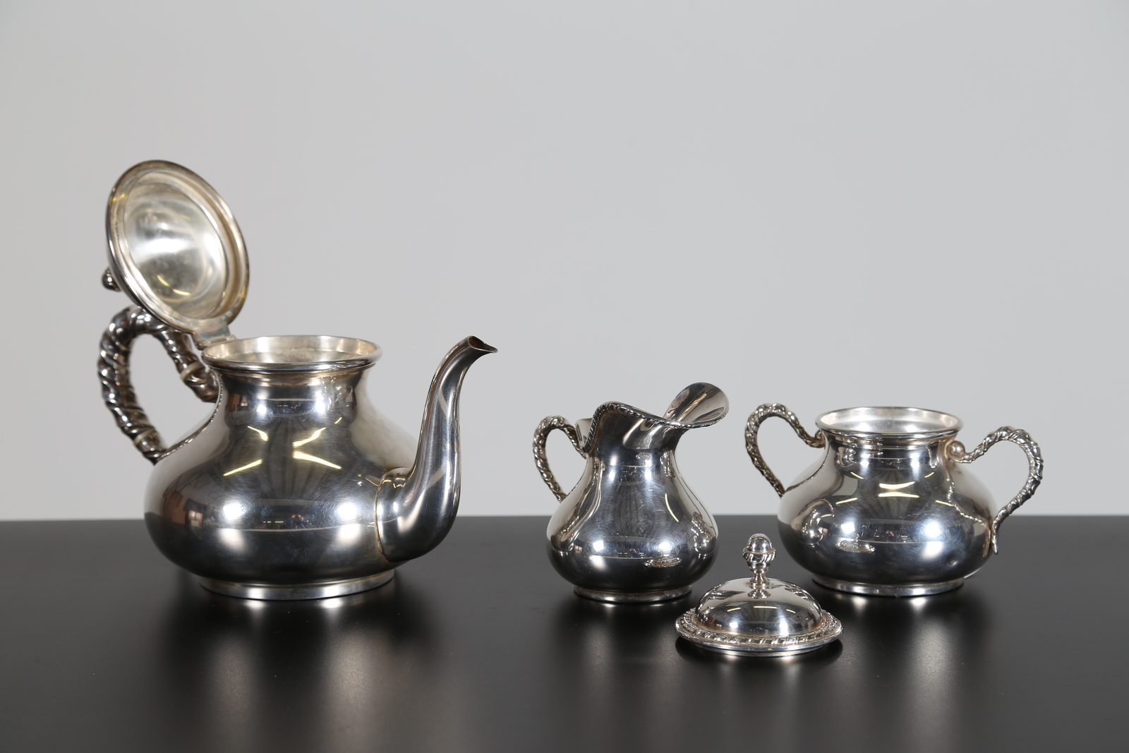 MANIFATTURA ITALIANA DEL XX SECOLO Teiera, zuccheriera e lattiera in argento...