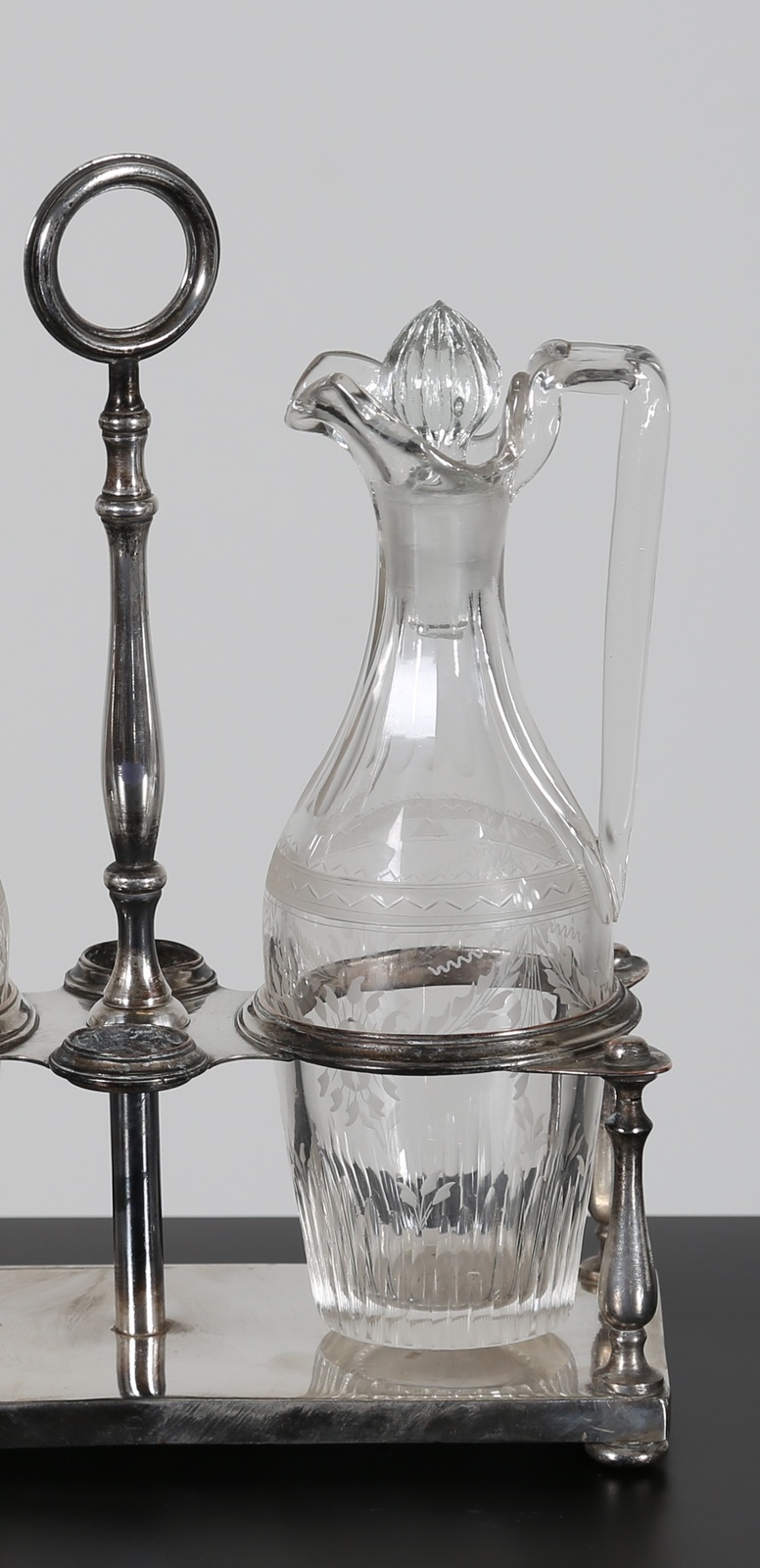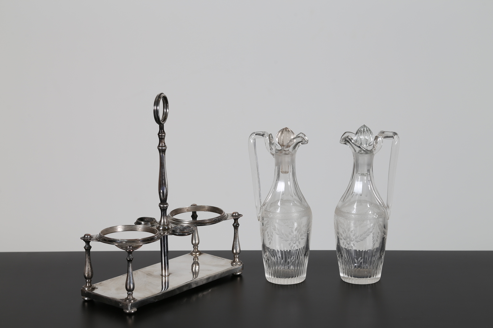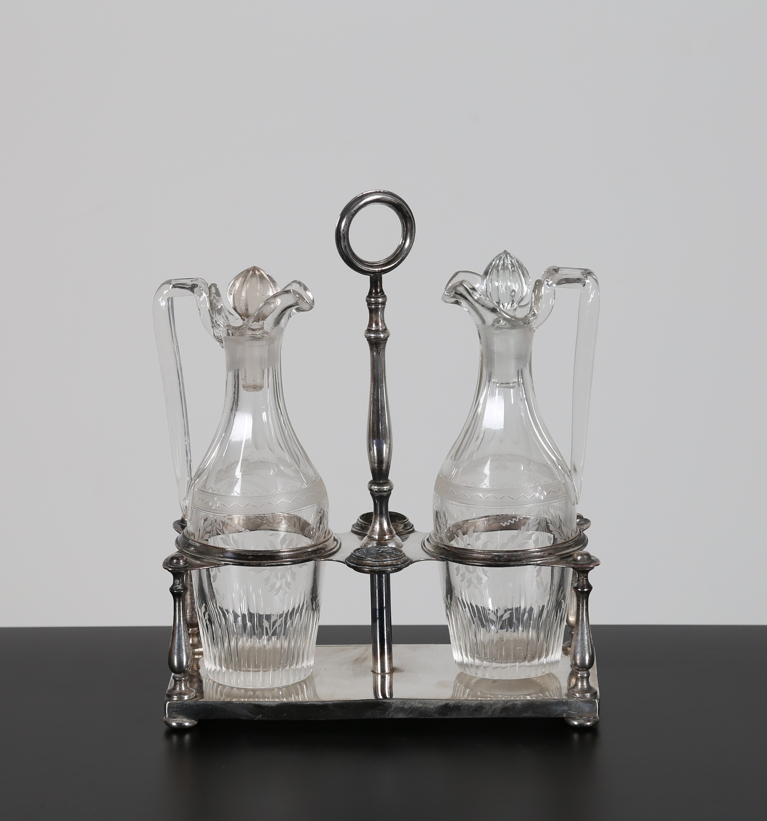 ARGENTIERE DEL XX SECOLO Oliera in argento con contenitori in cristallo...