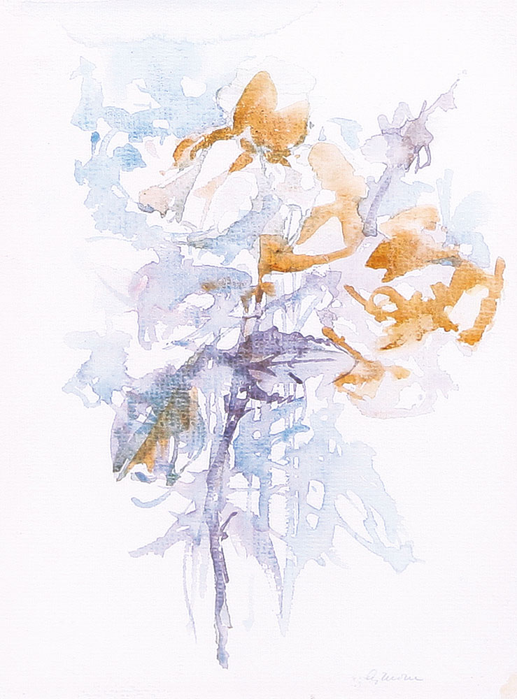 GIUSEPPE AJMONE Carpignano Sesia 17/02/1923 - 07/04/2005 Fiori, 1979 acquerello su carta cm. 24x18, firma in basso a destra, etichetta della Galleria Annunciata (MI) al retro.