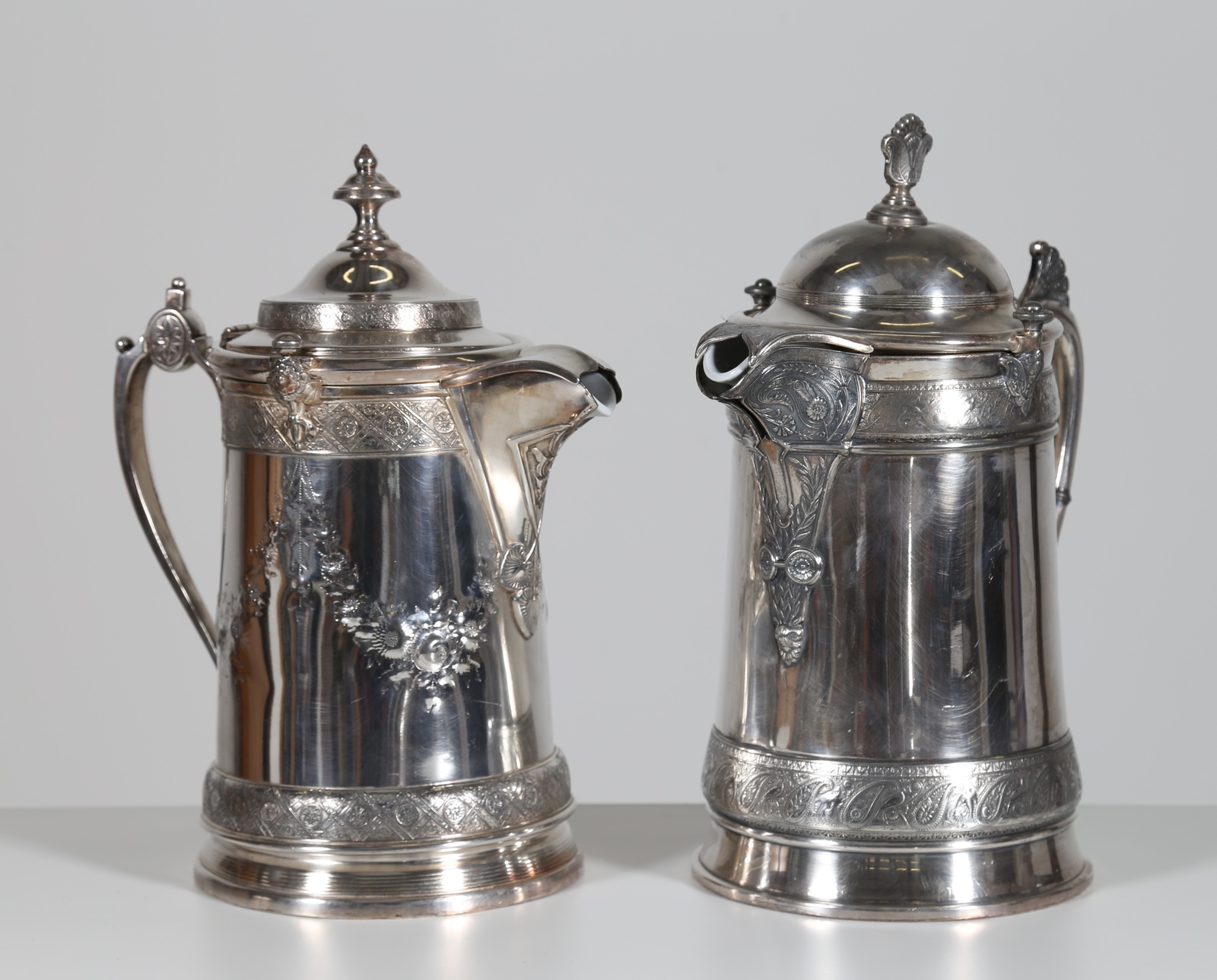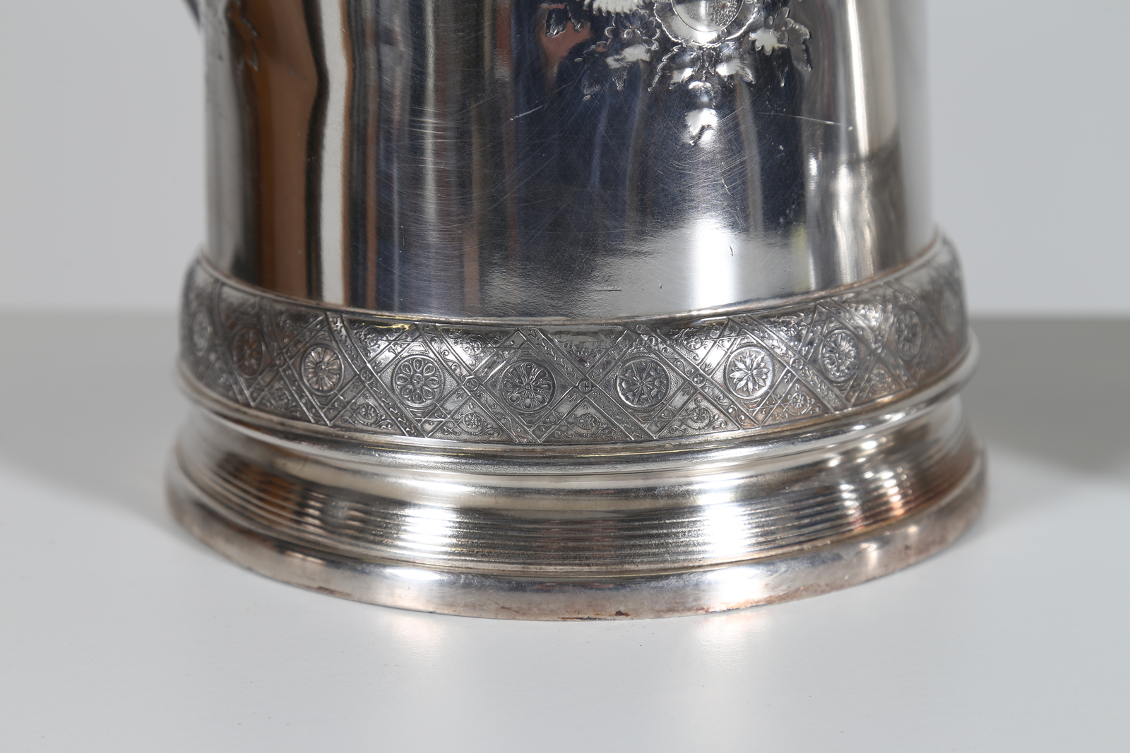 MANIFATTURA INGLESE DEL XIX SECOLO Coppia di tankard in sheffield cesellato...