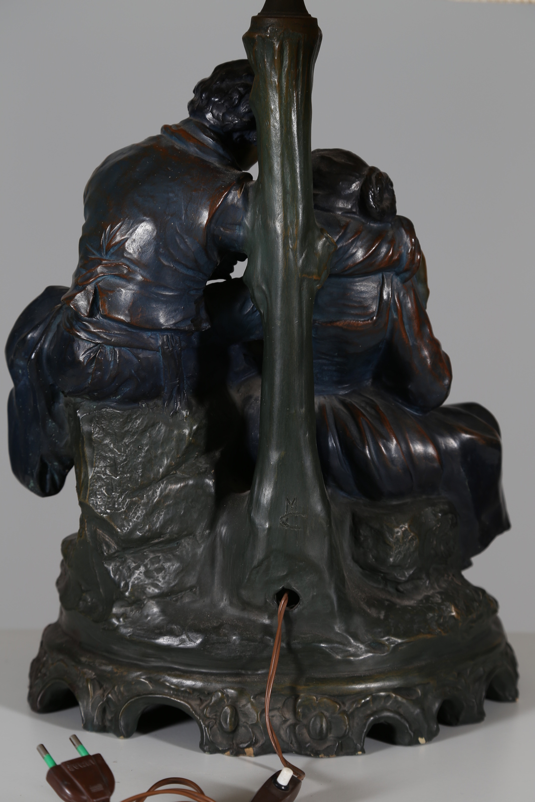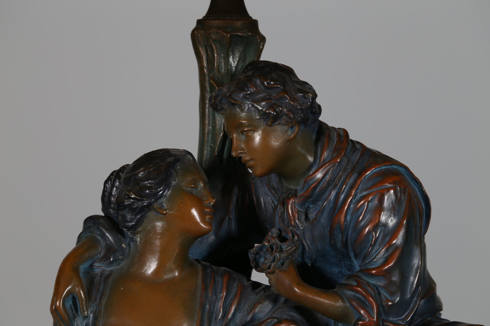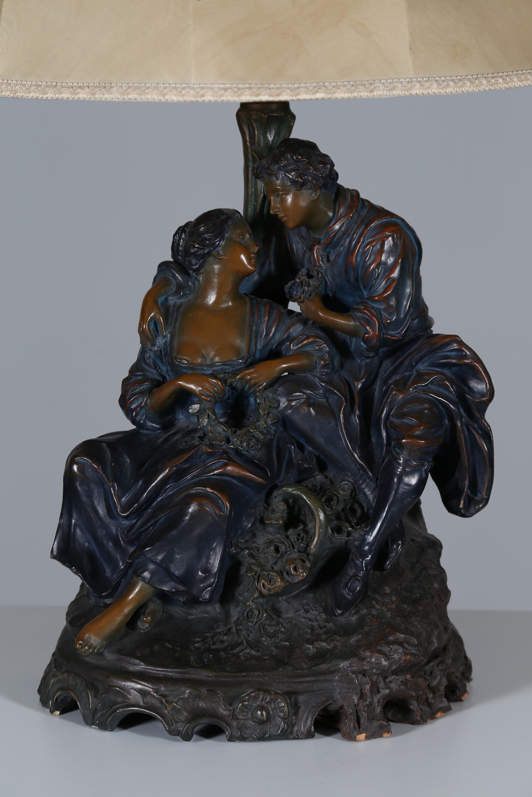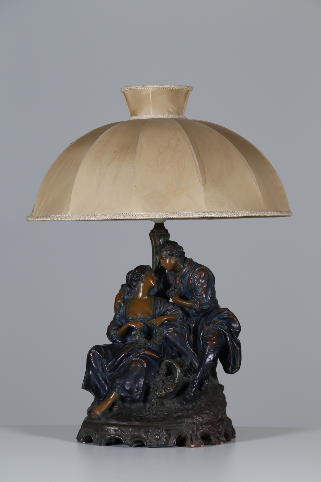MANIFATTURA FRANCESE DEI PRIMI ANNI DEL XX SECOLO Lampada raffigurante amanti. -. Cm 55,00 x 70,00 x 55,00.